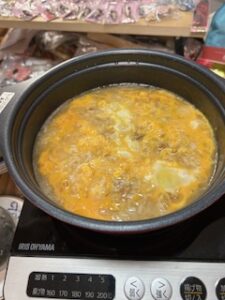 東京のO先生からいただいた帝国ホテルのふかひれ雑炊やかに雑炊Mさんに作っていただきました。お歳暮で頂いたのは皆さんと食べます
