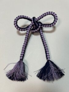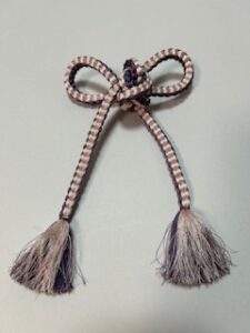 YM先生、今日は来年出張帯締め体験のサンプルつくりです