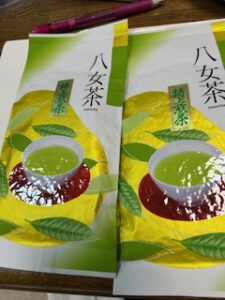 12時40分Nさん来られました。今日はパンを買っていました。御土産に八女茶いただきました。