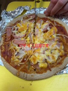 ピザ完成です。昨日はいっぱい具をのせましたが、今日はシンプルです。まだソースやチーズハムありピザトーストにするかな?食べすぎですね