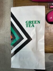 Nさん見えます。体験の方とお話されて、お昼私が買ってきたパン、そして15時おやつえくぼ堂のおかき出します